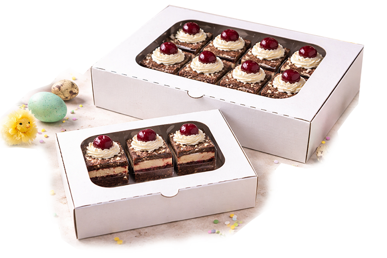 Mini (4×4 szelet) és Maxi (8×4 szelet) változatban, így tökéletes választás akár családi desszertnek, akár ajándéknak.