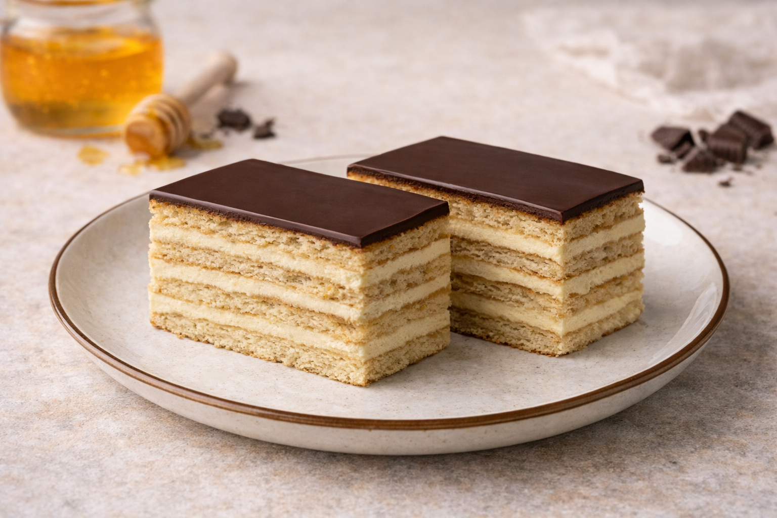 Az egyik legismertebb és legkedveltebb klasszikus sütemény Magyarországon. Jellemzője a lágy, rétegezett tészta, a gazdag, krémes töltelék és a karakteres mézes íz, amely minden falatnál ünnepi hangulatot teremt. Ez a desszert nemcsak finom, hanem látványos is, így kiváló választás családi összejövetelekre, ünnepi asztalra vagy vendégváró desszertként.
